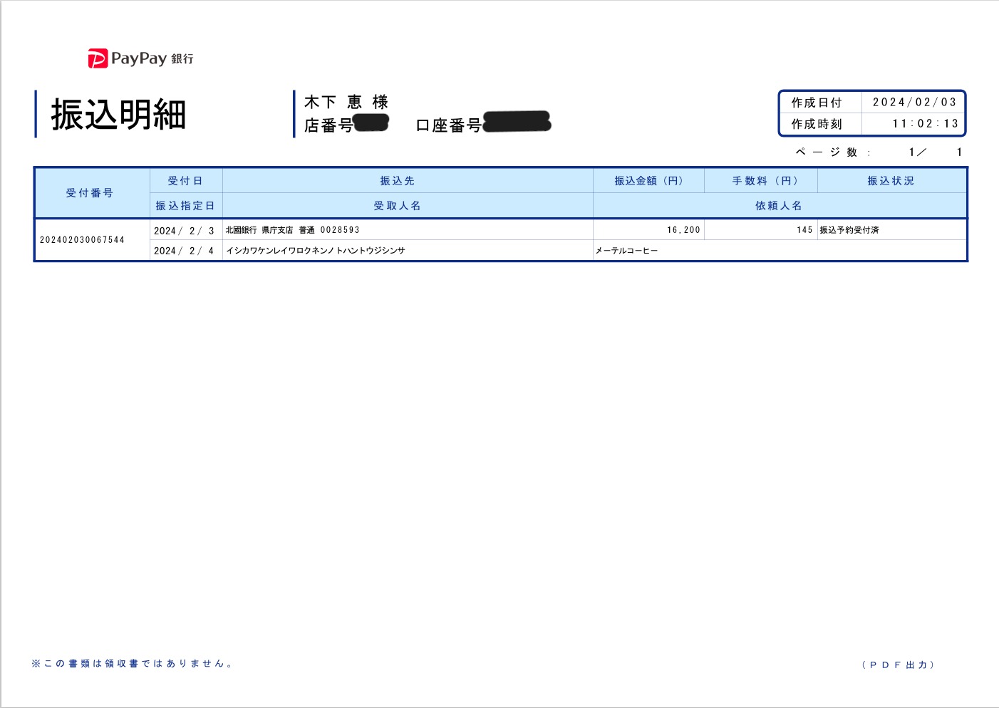 振込明細のPDFが横向きで見にくいですが、そのまま載せます